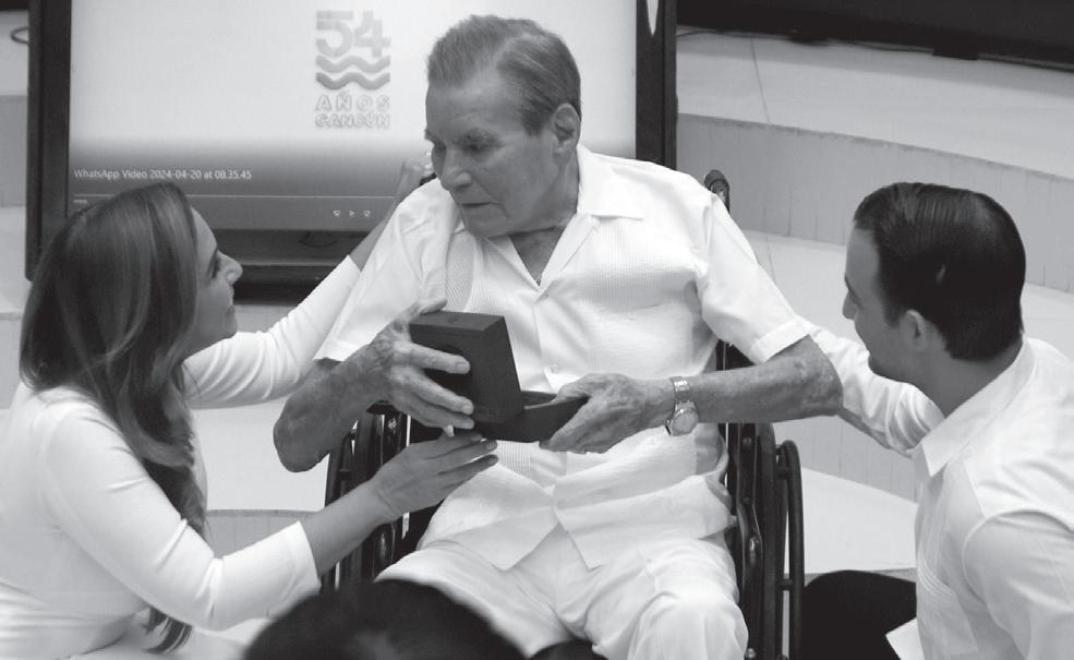 nado “Proyecto Cancún”, por quien se nombró dicha medalla que es la más alta distinción que otorga el Ayuntamiento de Benito Juárez a uno de sus habitantes ejemplares año con año, ya que representa el valor y visión a esta tierra en la que han muchos han decidido vivir y echar raíces.
