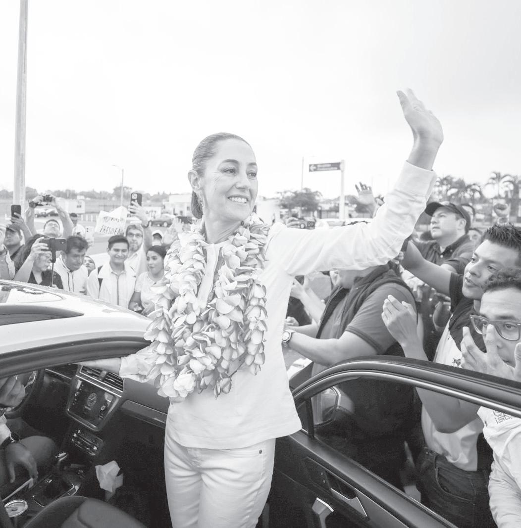 general Luis Crescencio Sandoval y el almirante José Rafael Ojeda Durán, respectivamente. Sheinbaum fue recibida por sus simpatizantes con música jarocha, collares de flores, artesanías, además le regalaron café, dulces de coco y “bendiciones”.