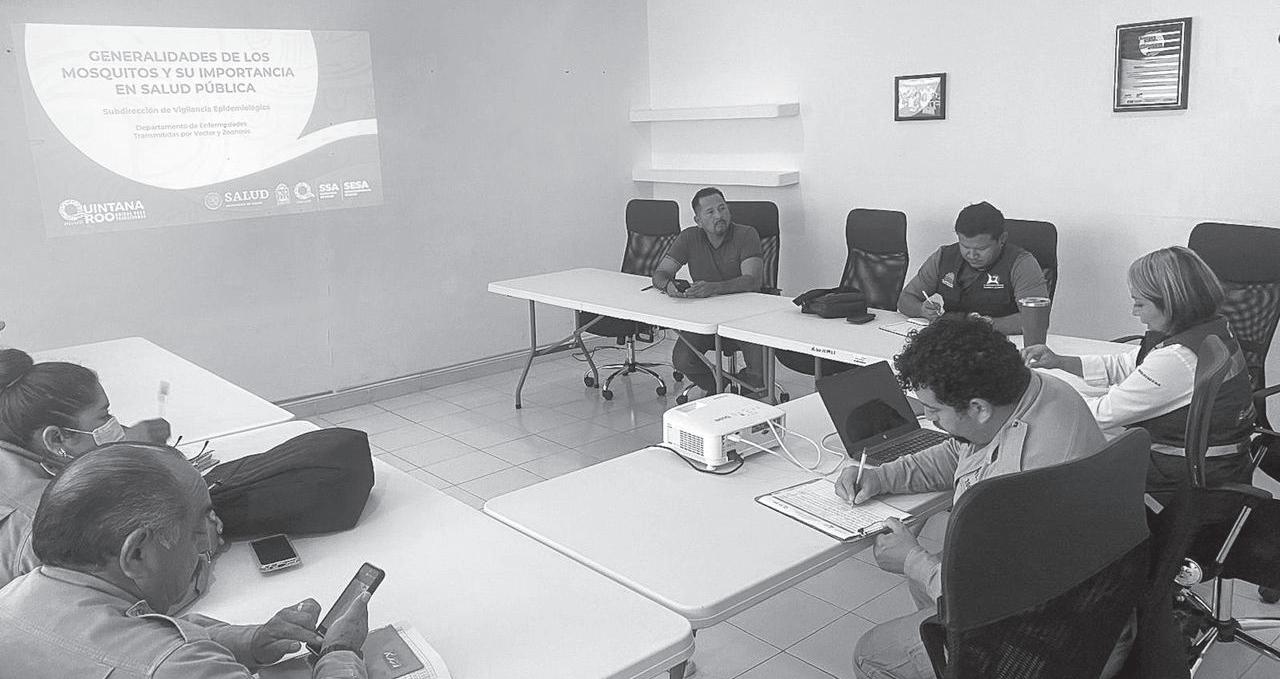tana Roo, informó que, durante la reunión, la Subdirección de Vigilancia Epidemiológica expuso las principales estrategias del programa de vectores para el combate de las arbovirosis.