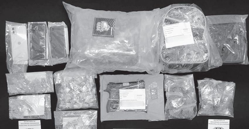 fuego abastecida con 5 cartuchos útiles, más de 167 envoltorios con posible metanfetamina y 16 con lo que parece marihuana, por lo que fueron puestos a disposición de la Fiscalía Especializada en Delitos contra la Salud en su Modalidad de Narcomenudeo.