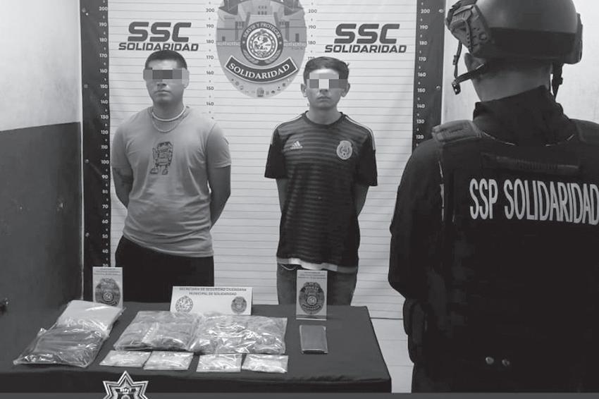 Narcomenudeo. La Policía Municipal y Tránsito de Solidaridad pararon al circular en una moto a Ever “N” y Josmar “N”, pero les descubrieron 55 dosis de diferentes drogas y 10 pastillas en el fraccionamiento Palmas I.