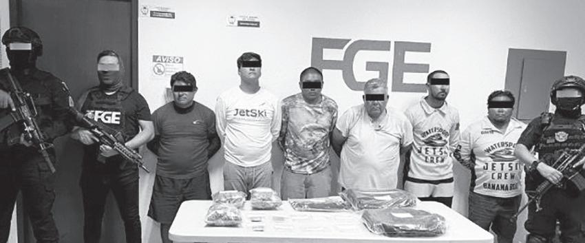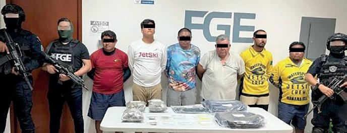 En una primera acción, en la zona de playas del municipio de Solidaridad, fueron detenidos Alexei “N”, Andrei Kevin “N”, Deaniel Jesús “N”, José Alfredo “N”, David “N” y Gilberto “N”, al momento de la detención tenían entre sus pertenencias dosis de hierba verde y seca similar a la marihuana, además