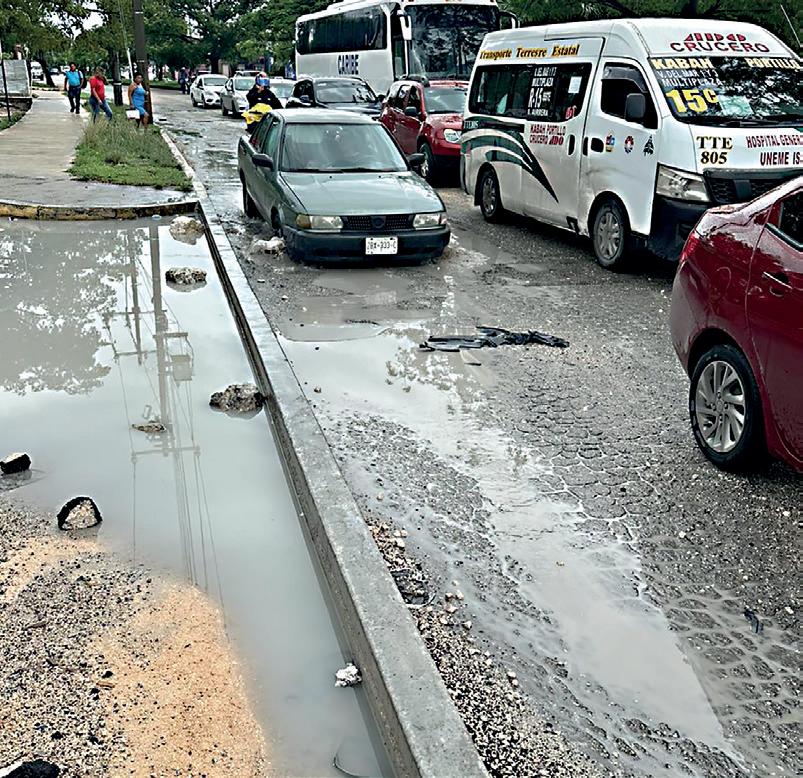 › A lo largo de la avenida Kabah se localizan “cráteres”, en donde más de un vehículo ha sufrido daños en la suspensión.