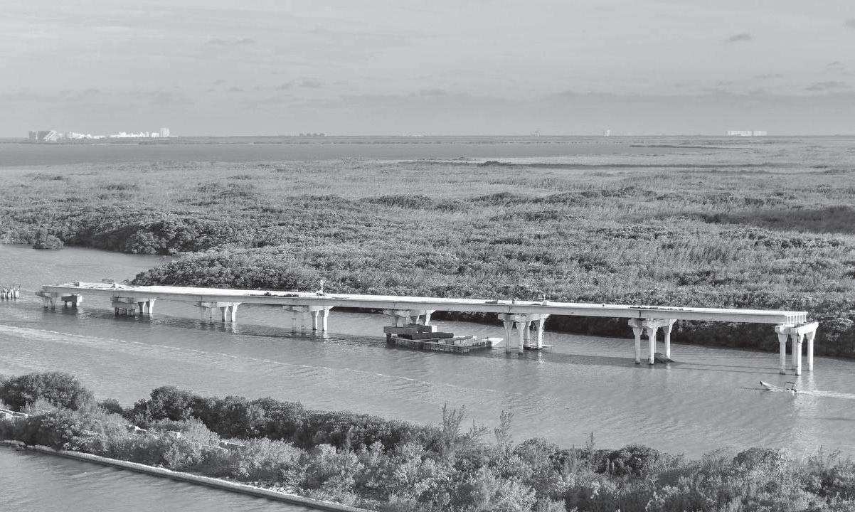 › Debido a las lluvias registradas durante la semana pasada se tuvieron que suspender momentáneamente los trabajos de construcción del puente vehicular Nichupté.