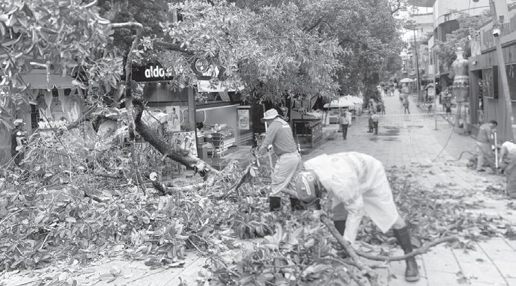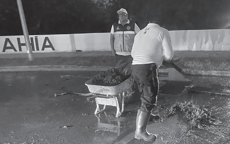 Mientras tanto, los trabajadores municipales siguen trabajando en las calles de Cancún realizando la poda de árboles, barrido y recoja de basura vegetal y doméstica, limpieza de alcantarillas y rejillas, desazolves de pozos de absorción, entre otras acciones para evitar encharcamientos y en casos, inundaciones de avenidas; por lo que se pide a la ciudadanía no tirar basura, ni cacharros en las calles, así como barrer el frente de sus casas.
