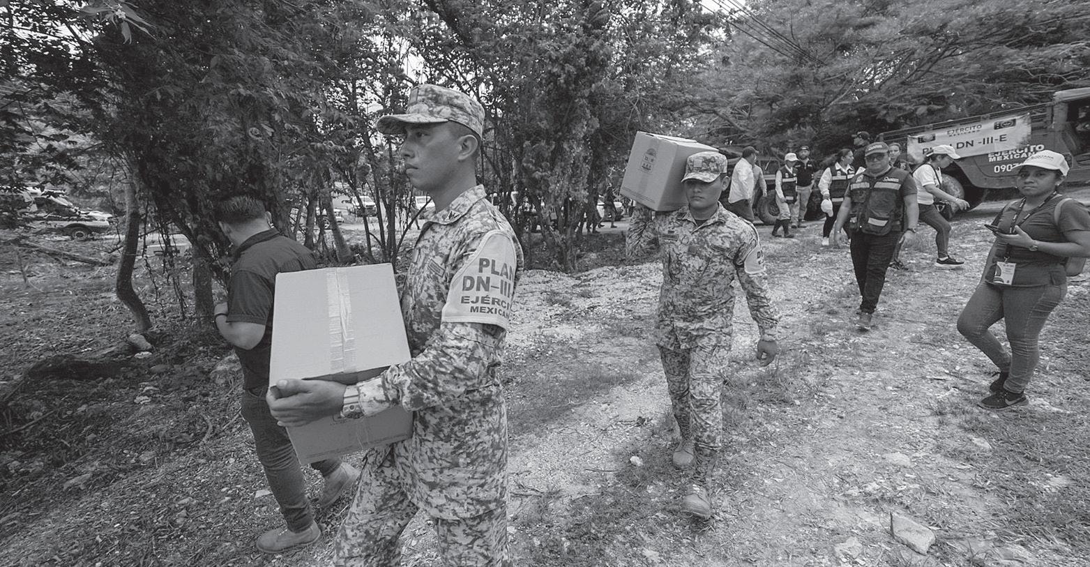 › Personal del Ejército Mexicano, a través de su plan DN-III-E, se ha encargado de distribuir casa por casa despensas y alimentos.