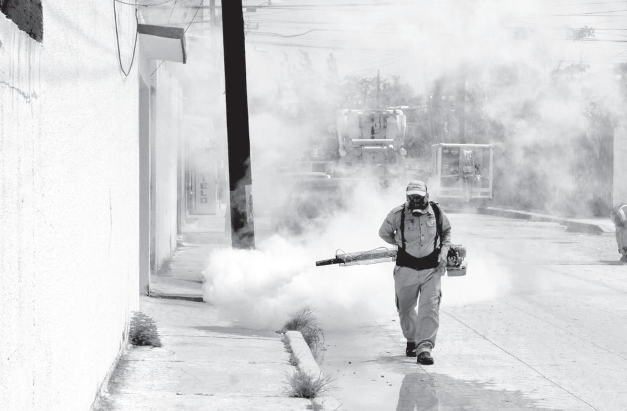 › En coordinación con la Jurisdicción Sanitaria No. 2, con limpieza de áreas verdes, descacharrización y control de vectores de transmisión con termonebulizaciones.
