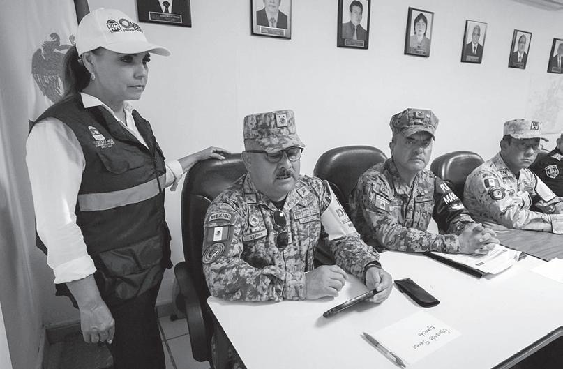La Guardia Nacional mantiene a 350 elementos y 20 vehículos para el auxilio; la Marina a 255 elementos y 11 vehículos, y han evacuado 397 personas; el Ejército 100 elementos y 15 vehículos quienes han apoyado en la repartición de despensas, raciones calientes y evacuación de personas.