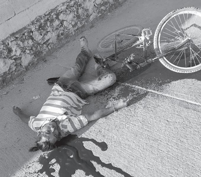que viajaba en su bicicleta quedó tendido en la banqueta con varios disparos de arma de fuego en su cuerpo.