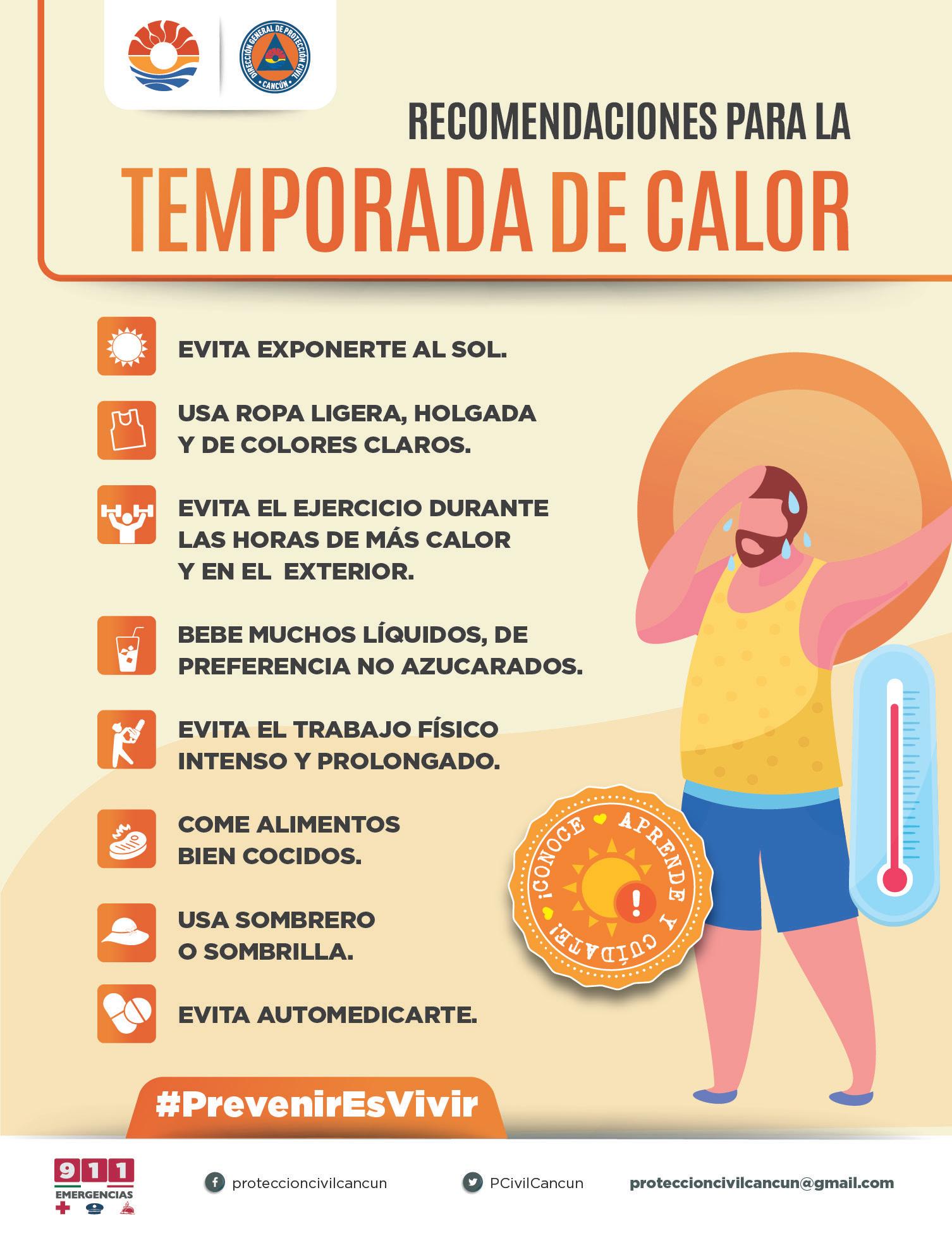 De continuidad a las acciones para protección de la salud de la ciudadanía, el gobierno municipal de Benito Juárez, a través de la Dirección General de Protección Civil, refuerza las medidas preventivas que deben seguir para evitar “golpes de calor” a consecuencia de las altas temperaturas que se sienten.