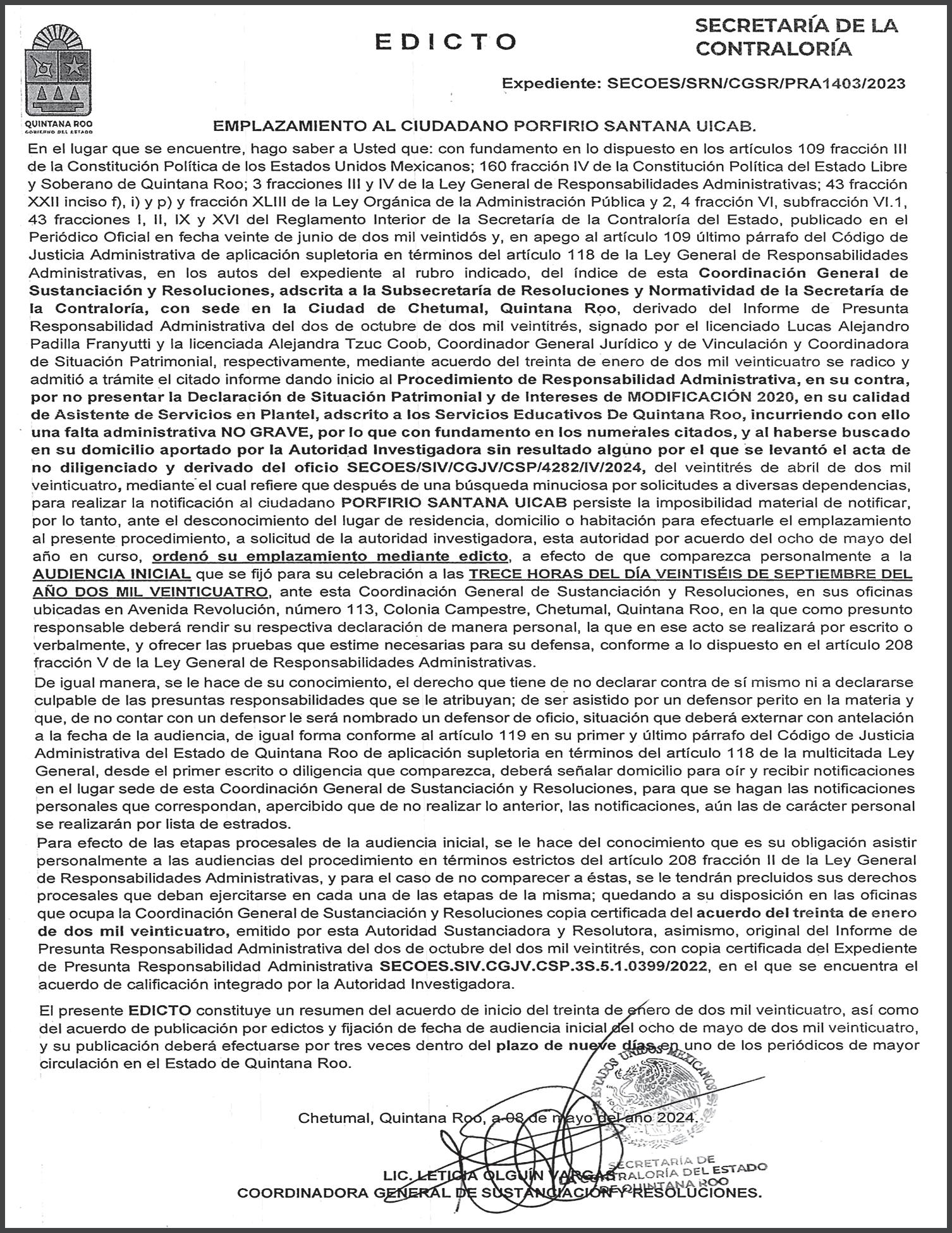 Del cumplimento del Mandamiento Judicial, el detenido quedó a disposición del juez penal de Primera Instancia, quien decretó el auto de formal prisión en contra del ahora imputado. Cabe destacar que Ulises “N” fue vinculado a proceso por un juez de control por su probable participación en el delito de feminicidio en agravio de una víctima del sexo femenino, ocurrido el 3 de febrero de 2019, en el municipio de Solidaridad; por esta causa, permanecerá en prisión preventiva por el término de dos años.