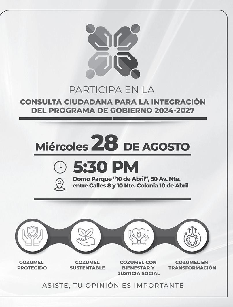 de puertas abiertas. “Estoy convencido de que con un esfuerzo conjunto podemos lograr grandes cosas para Cozumel. Mi compromiso es escuchar a todos los sectores y establecer una agenda que beneficie a toda la comunidad”, afirmó. Chacón Méndez, también invitó a todos los ciudadanos a participar en la tercera Mesa de Consulta Ciudadana este miércoles 28 de agosto, a las 5:30 p.m. en el domo del Parque 10 de Abril.