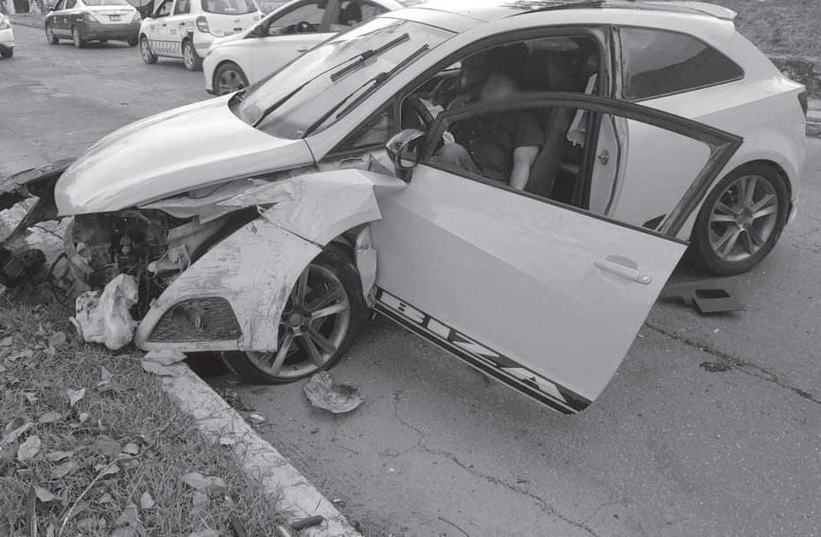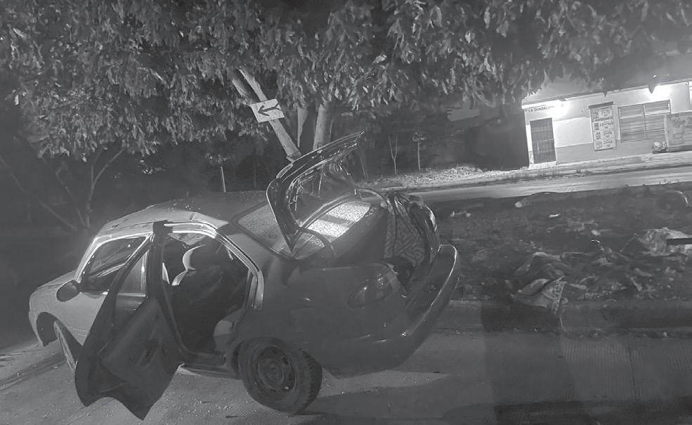 del alcohol un automovilista terminó impactándose contra un árbol en la Supermanzana 216, por la avenida Niños Héroes, en el fraccionamiento La Guadalupana 2, frente al Six de este lugar.