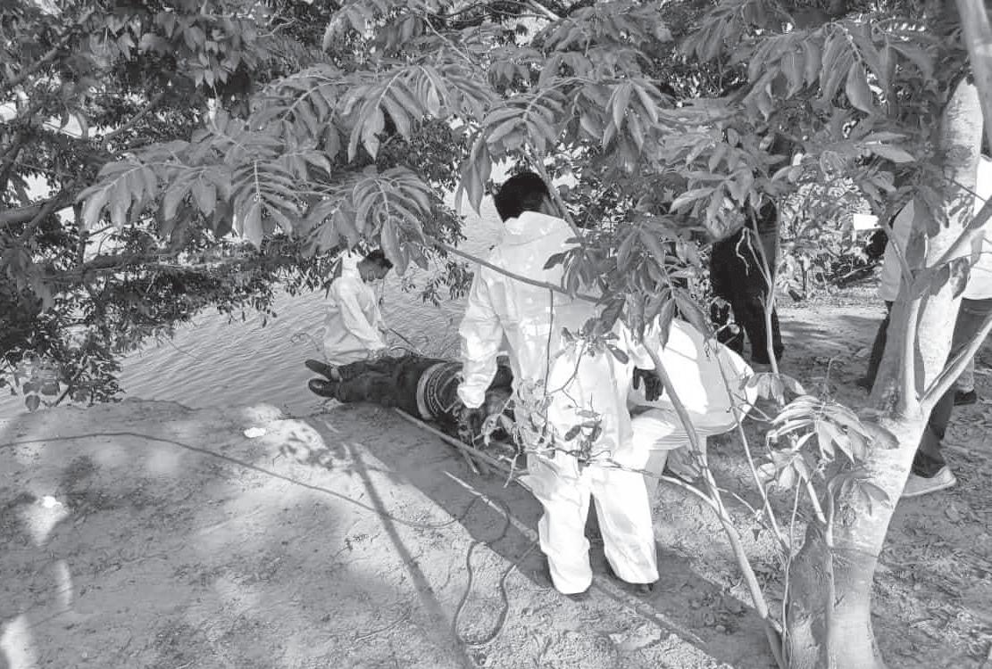 Posteriormente el personal de la Fiscalía General del Estado (FGE) se hizo cargo del levantamiento de los restos humanos que