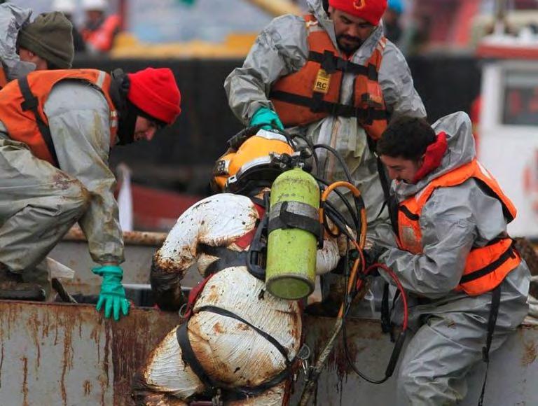 tero. Lo que siguió quedó documentado en querellas, informes y declaraciones cruzadas: ruptura de espías, retiro de un remolcador durante la operación, pérdida de control y, a continuación, una mancha que avanzó mar adentro mientras la bahía se cerraba a la navegación. Al inicio se habló de 3 mil litros; días más tarde, ENAP corrigió: habían sido 22 mil. La diferencia no era un tecnicismo: cambiaba el protocolo de emergencia, multiplicaba las sanciones posibles y ponía en cuestión la suficiencia de la respuesta inicial. En tierra, más de 600 pescadores exigían explicaciones; en el agua y en la arena, aves muertas o cubiertas de petróleo se transformaron en prueba de que la costa —otra vez— pagaba el costo de un error operativo. En paralelo, la autoridad marítima abrió investigaciones para delimitar