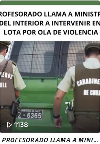 COLEGIO DE PROFESORAS Y PROFESORES HA INSTADO A LA MINISTRA DEL INTERIOR, A HACERSE CARGO DE LA VIOLENCIA EN LA CIUDAD DE LOTA.