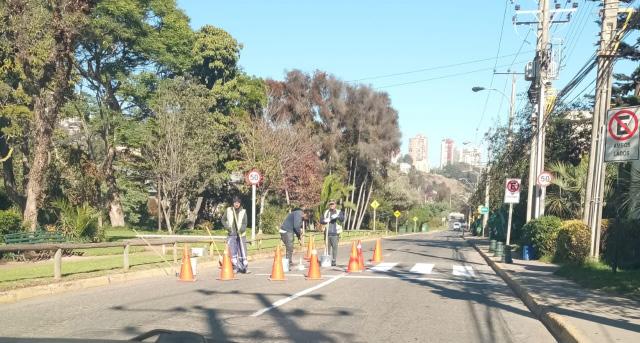 Realizan paso peatonal en el cruce entre Plaza España y calle José Manuel Balmaceda en Reñaca