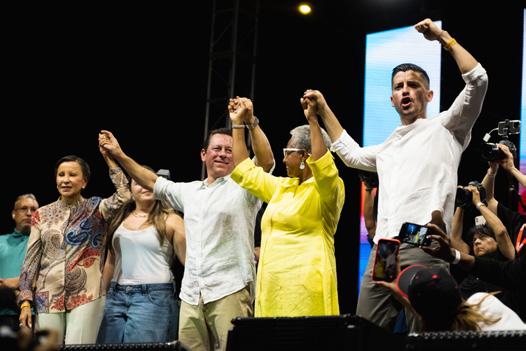 “Redibujamos la historia del país en el día de hoy [...] este es el inicio de una transformación gloriosa de nuestro país. Yo me siento honrado por quienes han sido candidatos y candidatas, que dieron un paso al frente para la Alianza. Siento un orgullo por los funcionarios de colegio”, expresó el candidato, en compañía de Residente, los legisladores y otras figuras más.
