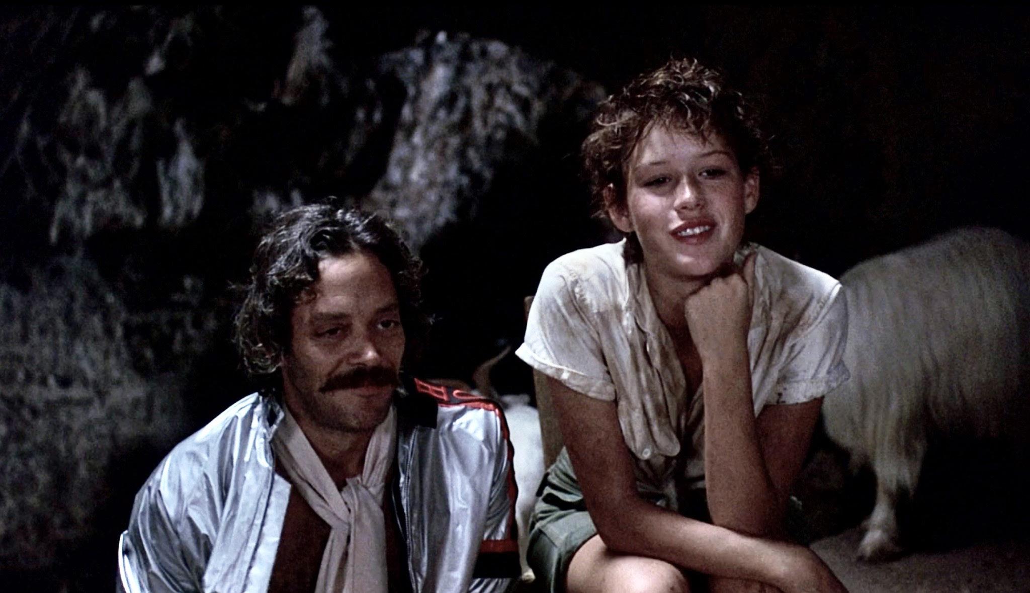 Este filme del director Paul Mazursky no parece decidirse en si ser una historia de un hombre que se enfrenta a su crisis de mediana edad o una fan tasía donde los seres humanos al apartarse de lo familiar descubren sus deseos, pasiones y sueños al desechar la realidad social que los definía. No logra engranar estos dos aspectos y por eso el fil me no tiene cohesión y tiende a ser desigual. En ningún momento Mazursky pone en duda el racis mo y elitismo del personaje de Próspero/Phillip (John Cassavettes) hacia Ariel y Calibán. Quizá la única persona que entiende plenamente esta rela ción es Raúl Juliá en su interpretación de Calibán. Juliá le inyecta la vitalidad y definición que escri tores como Aimé Césaire de Martinique y Roberto Fernández Retamar de Cuba recogen en su obra y su ensayo sobre “The Tempest El Calibán de Juliá no es un ser feo y depra vado. Todo lo contrario, es el único con una visión práctica de la vida, sincero en sus acercamientos para seguirle el