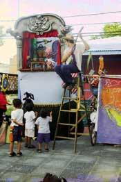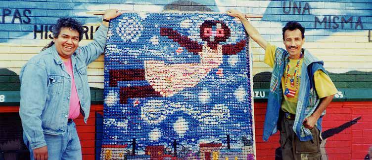 Déjeme contarle ahora de mi grupo Bembeteo que en Chicago y en la Isla hace cuentos en tarima en tiempo de bomba y plena con tapices y poemas y mucho baile y canción. Como ya usted muy bien sabe en la tradición de bomba se tocan unos palitos sobre el lomo de un barril y son los cuás tan mentados y recogen la presencia de nuestra gente taína cuyo tambor no tenía un cuero sobre el madero sino un hueco sobre el tronco del árbol que era tambor. Lo importante es que el barril convertido en tambor bomba era un reciclaje astuto de un envase muy corriente que también era basura con muchísima frecuencia. Para darle a la costumbre su versión contemporánea. Bembeteo toca el ritmo de los palitos alegres sobre el plástico enrejado de un lindo cajón de leche.