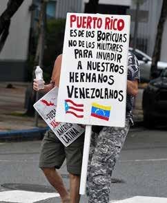 Los efectos de todo eso son muy visibles en Puerto Rico, donde sin haber empezado invasión a ningún otro país, la pequeña nación isleña y colonia estadounidense, es punto de destacamento de fuerzas de asalto anfibio, drones bombarderos, aviones F-35, el avión espía y bombardero P-8 Poseidón y barcos de guerra armados de misiles. El resultado inmediato ha sido la reactivación de protestas contra la militarización y la presencia del tema en asuntos de protestas sociales.