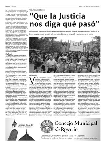 IOLETA ABREGÚ TENÍA 20 AÑOS y una hija de 3. Las dos vivían en Granadero Baigorria. El 3 de diciembre pasado, Violeta murió de un balazo en la cabeza: un disparo efectuado en la nuca, detrás de la oreja, tal como señalan los familiares. Eso es lo concreto. Muchos dicen que estaba en la puerta de su casa discutiendo con su pareja. Tanto él, un joven de 23 años que estaba cumpliendo prisión domiciliaria, como su familia, aseguraron que en medio de la discusión, Violeta entró y se suicidó. El joven la llevó al hospital Eva Perón, pero la muerte era irreversible. La familia de Violeta, sin embargo, pide que se profundice la investigación: no sólo no creen posible la decisión de Violeta, sino que aseguran que la relación que sostenía con su pareja era violenta y que la chica de 20 años vivía amenazada. De hecho, en la Fiscalía de Violencia de Género hay una denuncia realizada por ella en septiembre de este año. La familia espera que la Justicia investigue y determine qué pasó realmente. Pero hasta el momento sólo hay incertidumbre. “Ni siquiera nos mienten. Directamente no nos dicen nada”, dijo un familiar que prefirió permanecer en el anonimato, en la puerta de los Tribunales provinciales. El jueves pasado, una concentración y una marcha saca-