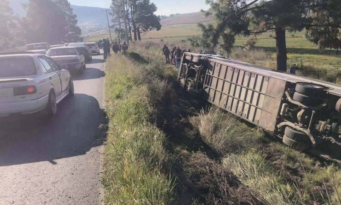 De acuerdo con los primeros reportes, la unidad perteneciente a la línea de transporte Flecha Roja se dirigía hacia la comunidad de Chalma cuando el conductor perdió el control, lo que provocó que el vehículo saliera del camino y terminara volcado sobre un terreno cercano a la carretera.