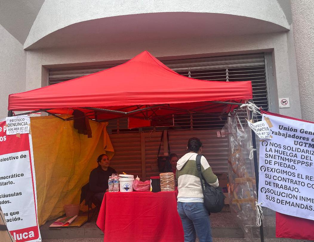 acoso constante a las trabajadoras y trabajadores, obligándolos a laborar jornadas extenuantes, privándolos de derechos tan elementales como la media hora de comida establecida en la Ley. Señalaron que van a esperar a que las autoridades de dicha institución sostengan una reunión con los líderes sindicales con el fin de que se pare dicha huelga, que ya lleva 10 días. El líder sindical de Toluca, dijo a las personas que están preocupadas por sus pertenencias y que ya se les venció su boleta, que las mismas están resguardadas de manera segura.