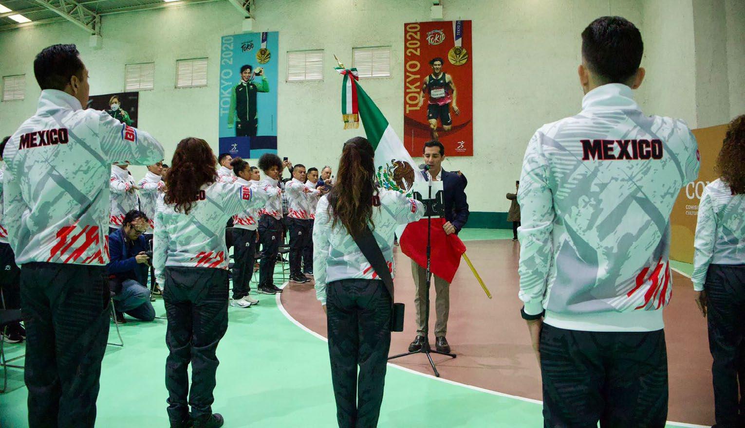 “Me llena de orgullo acompañarlos el día de hoy, abanderarlos, que lleven el uniforme, que tengan en sus hombros el gran compromiso de llevar a México, su país, a competir hasta Tokio”, declaró Rommel Pacheco ante deportistas, autoridades e invitados especiales que se dieron cita en las instalaciones de Villas Tlalpan CONADE.