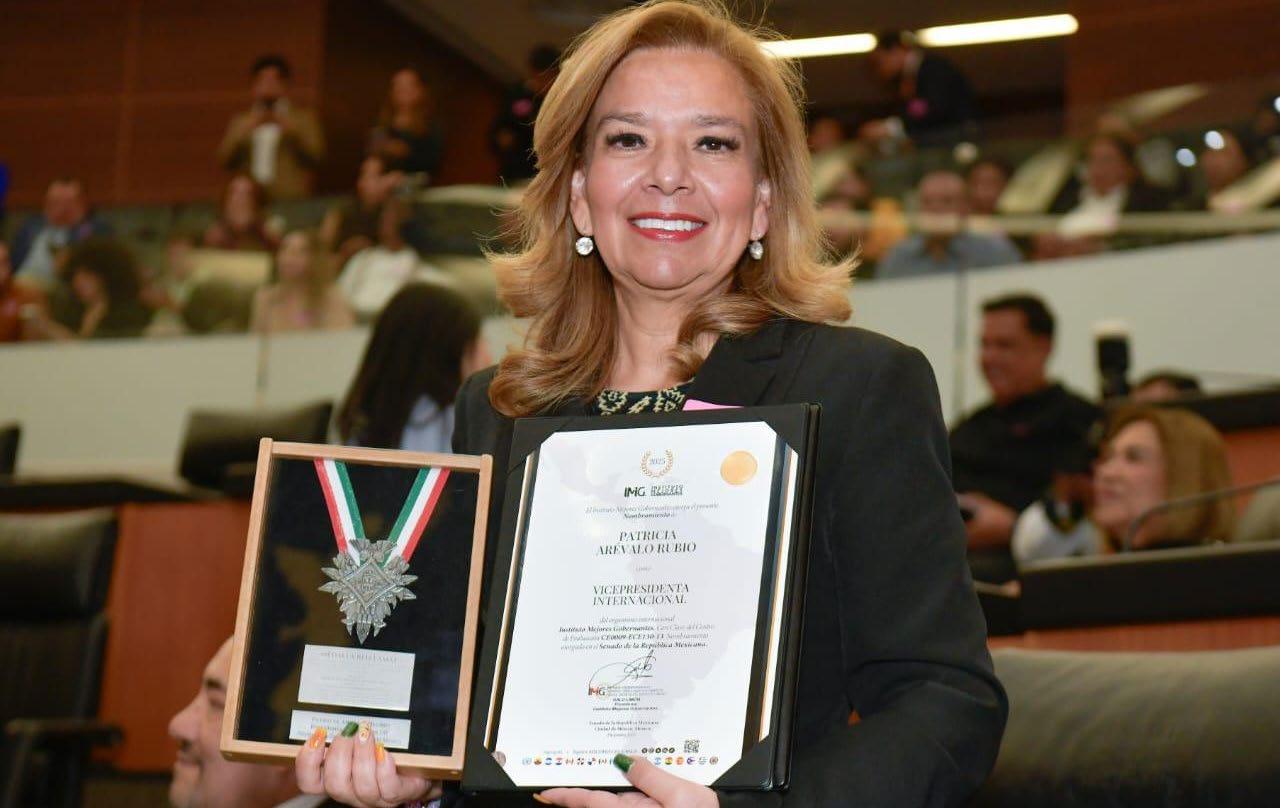 Atizapán, Méx.- Durante la Cumbre Mundial de Municipalistas, celebrada en el Senado de la República, la presidenta honoraria del Sistema Municipal DIF de Atizapán de Zaragoza, Paty Arévalo Rubio, fue nombrada Vicepresidenta Internacional del Instituto Mejores Gobernantes y reconocida con la Medalla al Mérito Ben Lamat.