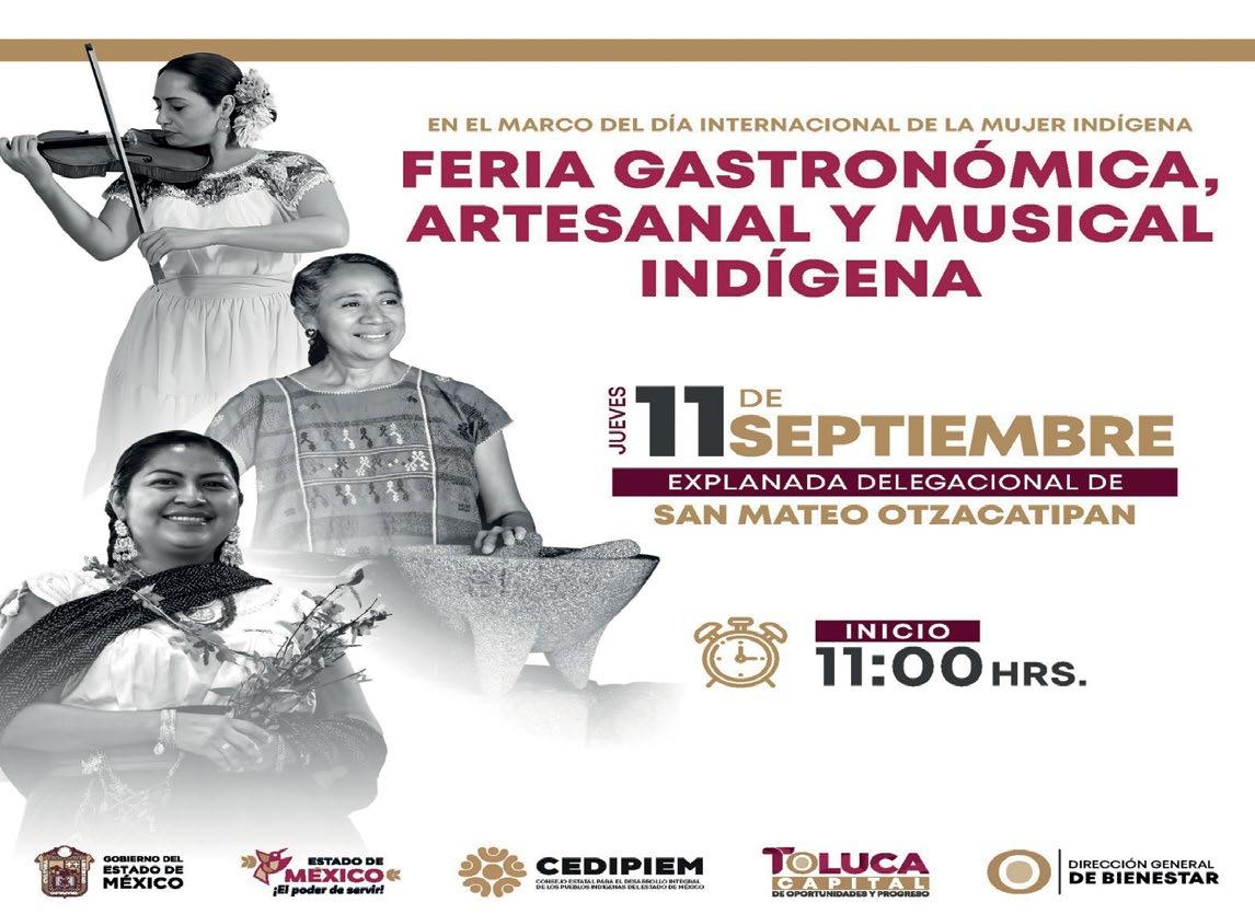 propósito de rendir homenaje a las mujeres pertenecientes a los pueblos indígenas, reconociendo su invaluable aporte a la sociedad y su papel fundamental en el núcleo familiar y en sus comunidades. Es importante destacar que participarán artesanos de diversas comunidades indígenas de Toluca como San Cristóbal Huichochitlán, Jicaltepec Autopan y San Mateo Otzacatipan, entre otras, con lo que el Gobierno municipal abre espacios a este importante sector para que puedan llegar a más personas y ofrecer sus productos. La Dirección General de Bienestar hace un llamado a disfrutar de esta feria impulsada para conmemorar el Día Internacional de la mujer Indígena 2025.