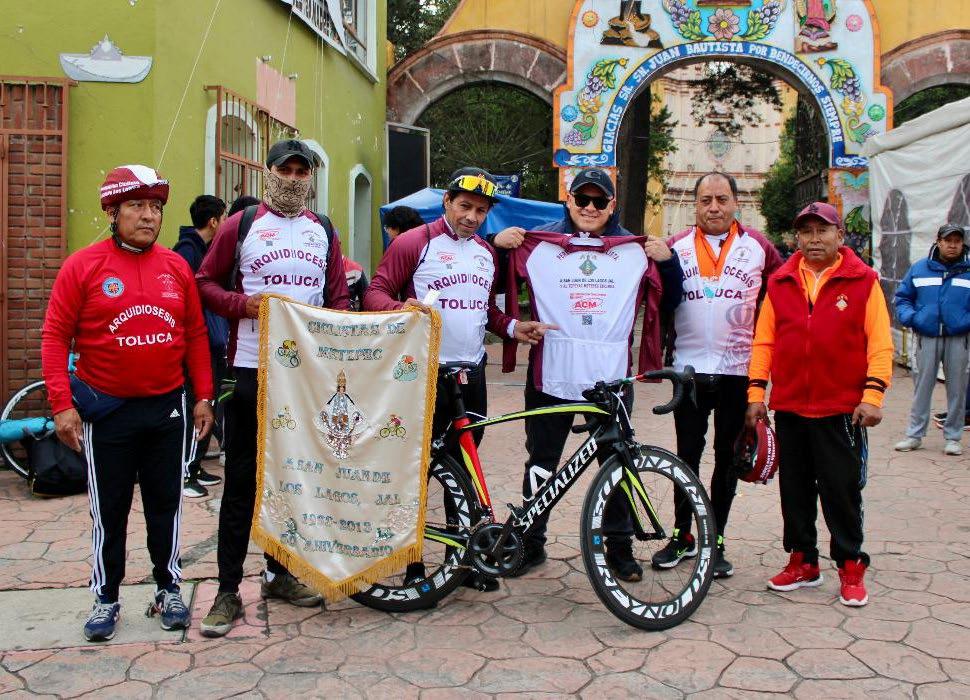 rumbo a San Juan de los Lagos, Jalisco. Todos fueron uniformados por Auto Concentraciones Metepec (ACM), con el fin de que puedan ser identificados durante el trayecto y hasta su objetivo. Como parte de la peregrinación ciclista, que tiene como fin demostrar su fe y agradecer a la virgen de San Juan, por la prosperidad, la vida y la salud, hombres y mujeres, salieron con dirección San Juan de los Lagos, en la Región Altos Norte del estado de Jalisco, México. En el primer día arribarán a San Juan del Río Querétaro, para el segundo día a Celaya, posteriormente el recorrido los llevará
