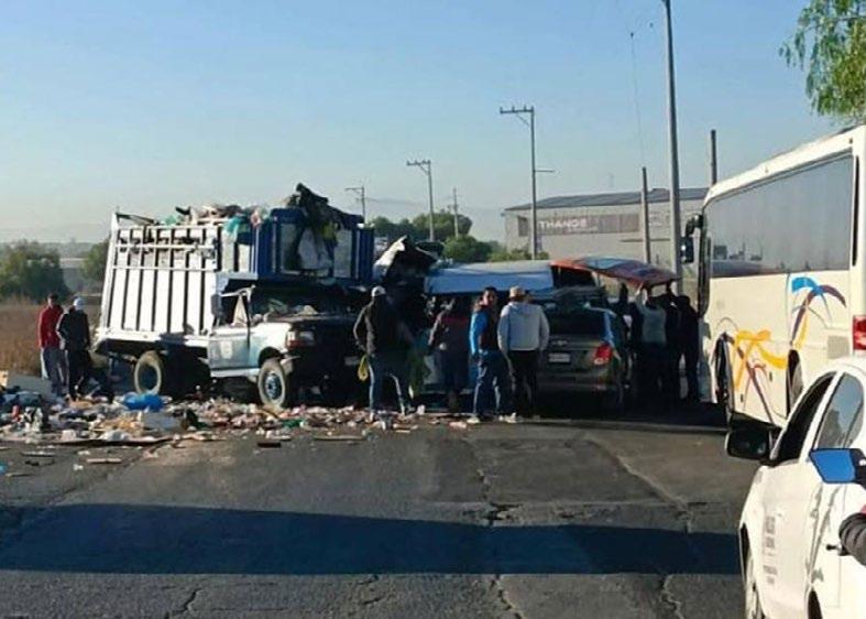 La unidad de transporte público, camioneta de recolección de basura y un automóvil particular fueron los involucrados en el choque.