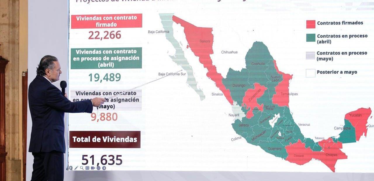 Ciudad de México.- Durante la conferencia “La Mañanera del Pueblo”, encabezada por la Presidenta Claudia Sheinbaum Pardo, el director general del Instituto del Fondo Nacional de la Vivienda para los Trabajadores (INFONAVIT), Octavio Romero Oropeza, presentó los avances del programa Vivienda para el Bienestar e informó que en los primeros días de abril se inició la construcción de 22 mil 266 viviendas y durante mayo estarán en etapa constructiva 51 mil 600, es decir, más de la mitad de la meta estimada para este año.