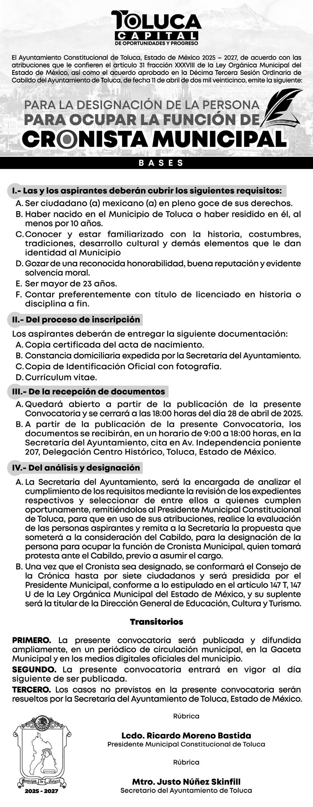 Toluca, Méx.- El Instituto Electoral del Estado de México (IEEM) pondrá en funcionamiento el 24 de abril de 2025 el Sistema Candidaturas Conóceles, un micrositio en el que se difundirá el perfil de las personas candidatas a la Presidencia del Tribunal Superior de Justicia; Magistraturas del Tribunal de Disciplina Judicial; Magistraturas del Tribunal Superior de Justicia, así como Juezas y Jueces del Poder Judicial del Estado de México.