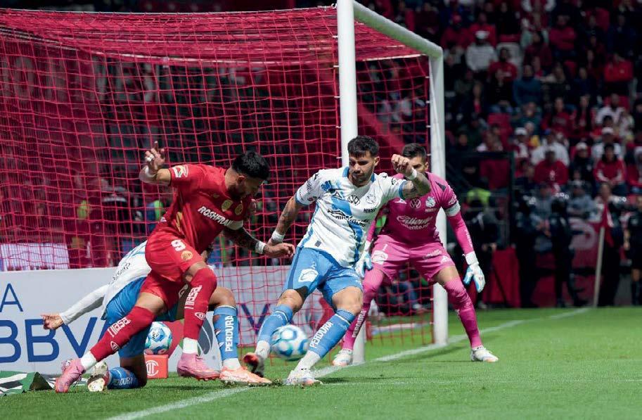 Federico Pereira buscaba su doblete cuando se levantó por los aires para conectar de cabeza, pero su remate se iba por encima de la meta de Julio González. El partido se ponía de ida y vuelta con la jugada de Efraín Orona de Puebla que atajó Luis García y el contra remate se fue por un lado.
