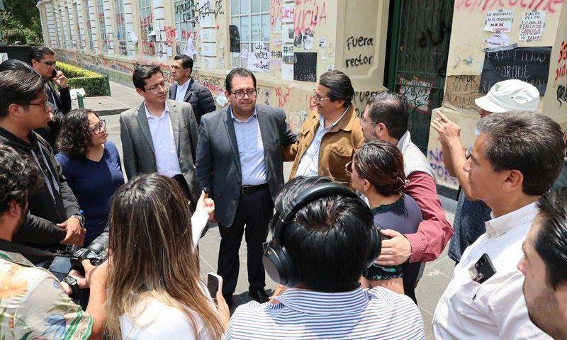 Acompañado de integrantes del Consejo Universitario para establecer comunicación directa con el movimiento estudiantil organizado e iniciar con la atención de las demandas planteadas en los pliegos petitorios.