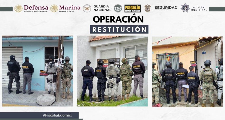 Tecámac, Tepotzotlán, Texcoco, Tezoyuca, Tlalmanalco, Tlalnepantla, Tultitlán, Toluca, Valle de Bravo, Valle de Chalco y Zumpango. Con respecto a los inmuebles asegurados como parte de Operación “Restitución”, la Fiscalía del Estado de México ya realizó la restitución de 52 de éstos a quién, con base en determinación del Ministerio Público se acreditó con la legítima propiedad de los mismos.