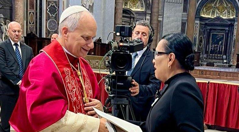 Rodríguez Velázquez fue atendida por el Papa León XIV durante la recepción de las delegaciones de los países en la Santa Sede.