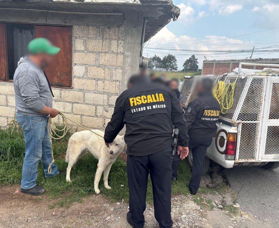 Toluca, Méx.- La Fiscalía General de Justicia del Estado de México (FGJEM), en coordinación con el Centro de Control y Bienestar Animal del Ayuntamiento de Toluca, rescató a dos caninos que presuntamente se encontraban en condiciones de maltrato en un predio de la delegación Santiago Tlacotepec.