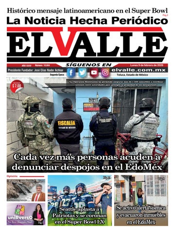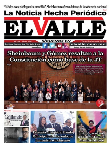 La Noticia Hecha Periódico El Valle, Año 35, 2 de octubre de 2025. Es una publicación de lunes a sábado editada por Editorial Sena, S.A. de C.V., calle Joaquín Fernández de Lizardi No. 408-A, Col. Salvador Sánchez Colín, C.P. 50150 Toluca, Estado de México, Teléfonos: 722-2190740 y 722-2190757, www.elvallemexico. com.mx, elvallemexico@yahoo.com.mx, Reserva de Derecho al Uso Exclusivo No. 04-2014-022810040200101 (versión impresa) y Reserva de Derechos al Uso Exclusivo No. 04-2025-031813562700-203 (versión digital), otorgadas por el Instituto Nacional del Derecho de Autor, Certificado de Licitud de Título y Contenido Número 16165, Otorgado por la Comisión Calificadora de Publicaciones y Revistas Ilustradas de la Secretaría de Gobernación. Editor Responsable José Elías Nader Mata, impreso por Editorial Sena, S.A. de C.V., calle Joaquín Fernández de Lizardi No. 408-A, Col. Salvador Sánchez Colín, C.P. 50150 Toluca, Estado de México, con un tiraje de 15,000 ejemplares y distribuido por Unión Única de Voceadores de México, A.C., calle Honduras No. 317, Col. Américas, C.P. 50140 Toluca, Estado de México.
