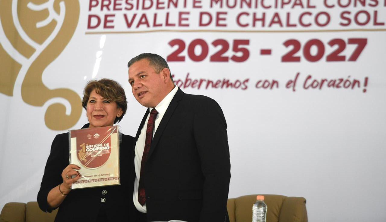La gobernadora Delfina Gómez Álvarez, acompañó al presidente municipal Alan Velasco Aguero durante la ceremonia de su Primer Informe de Gobierno, un acto que destacó la coordinación entre los distintos niveles de gobierno y el compromiso con la construcción de un Valle de Chalco más justo, seguro y próspero.