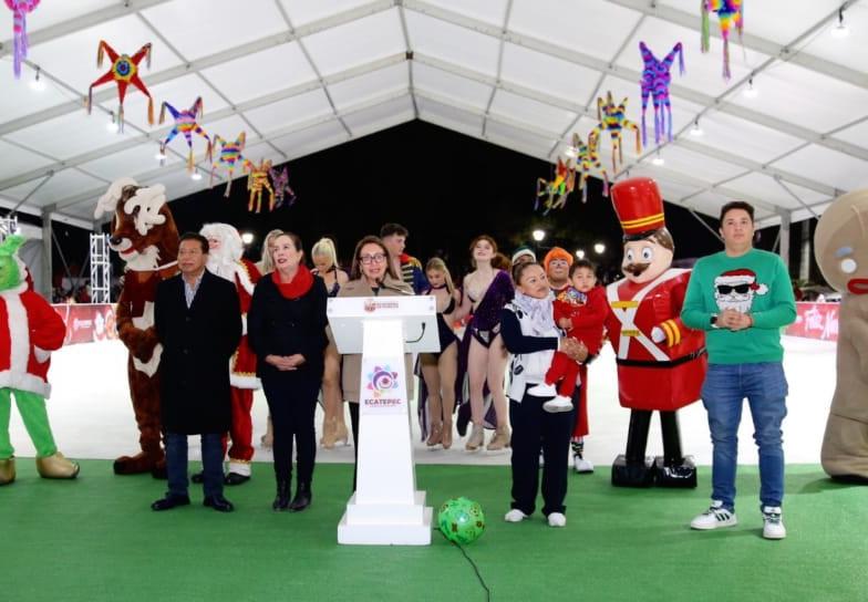 Desde la tarde un alud de personas se concentró en la explanada municipal, donde mil 200 ocuparon lugar en las gradas de la pista de hielo y otras 500 en sillas colocados al lado del árbol de Navidad, mientras que otras tres mil observaron de pie el inicio de los festejos navideños encabezados por el gobierno de Ecatepec.