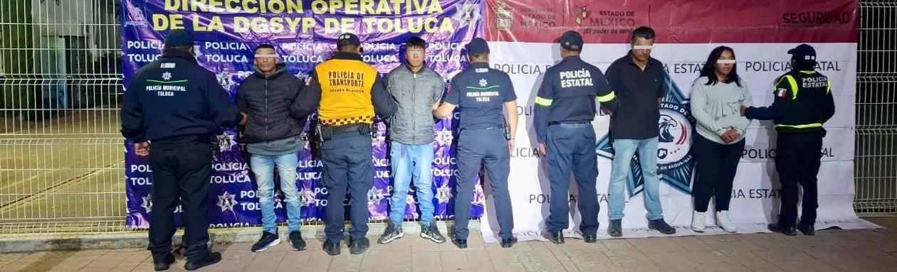 Toluca, Méx.- Cuatro personas fueron detenidas por elementos de la Dirección General de Seguridad y Protección de Toluca, en coordinación con la Policía Estatal, en la delegación San Lorenzo Tepaltitlán. El hecho fue detectado a través de las cámaras del C2, que alertaron sobre un robo en proceso en la tienda ubicada en calle Ganadería esquina Del Rastro, colonia La Magdalena, por lo cual, unidades policiacas acudieron al lugar de manera inmediata. Al arribar, los oficiales encontraron un cristal roto y mercancía tirada. No había personal de la tienda en el sitio, por lo cual, a través