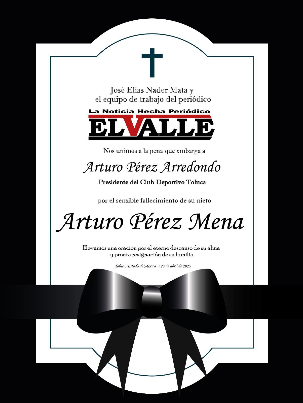 La Noticia Hecha Periódico El Valle, Año 34, 24 de abril de 2025. Es una publicación de lunes a sábado editada por Editorial Sena, S.A. de C.V., calle Joaquín Fernández de Lizardi No. 408-A, Col. Salvador Sánchez Colín, C.P. 50150 Toluca, Estado de México, Teléfonos: 722-2190740 y 722-2190757, www.elvallemexico. com.mx, elvallemexico@yahoo.com.mx, Reserva de Derecho al Uso Exclusivo No. 04-2014-022810040200101 (versión impresa) y Reserva de Derechos al Uso Exclusivo No. 04-2025-031813562700-203 (versión digital), otorgadas por el Instituto Nacional del Derecho de Autor, Certificado de Licitud de Título y Contenido Número 16165, Otorgado por la Comisión Calificadora de Publicaciones y Revistas Ilustradas de la Secretaría de Gobernación. Editor Responsable José Elías Nader Mata, impreso por Editorial Sena, S.A. de C.V., calle Joaquín Fernández de Lizardi No. 408-A, Col. Salvador Sánchez Colín, C.P. 50150 Toluca, Estado de México, con un tiraje de 15,000 ejemplares y distribuido por Unión Única de Voceadores de México, A.C., calle Honduras No. 317, Col. Américas, C.P. 50140 Toluca, Estado de México.