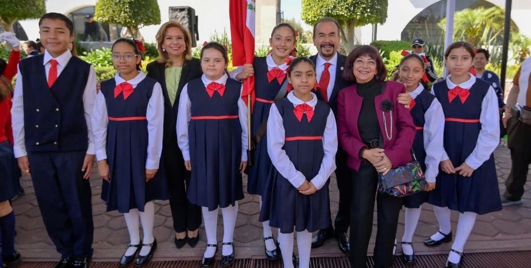 En el marco del Día de la Bandera, la subsecretaria de Educación Básica, Angélica Noemí Juárez Pérez, destacó que el lábaro patrio merece honores y respeto, ya que nos llena de orgullo al recordar los momentos más importantes de la historia nacional y la lucha por nuestra independencia.