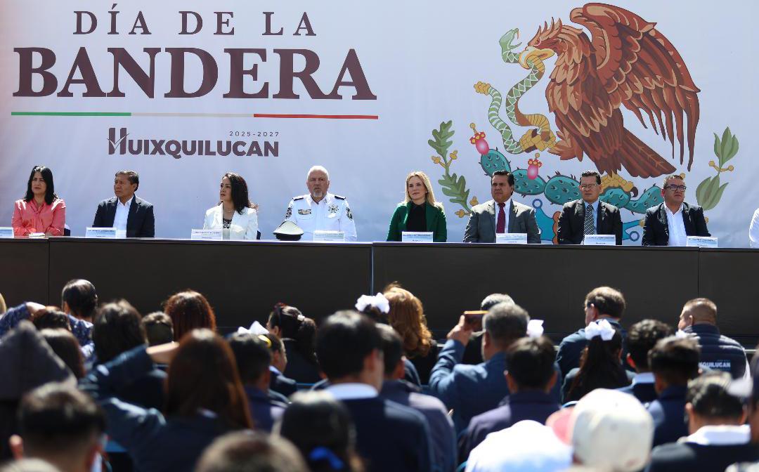 uixquilucan, Méx.-En el marco de la celebración del Día de la Bandera, la presidenta municipal Romina Contreras Carrasco, convocó a la población a mantenerse unida y a seguir trabajando 24/7 para que