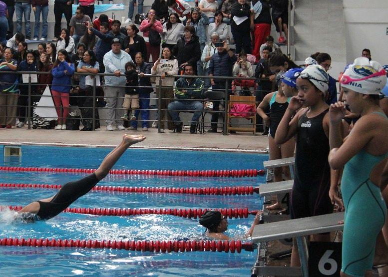 en el octavo Tultepec con 56, en el noveno I.M.C.U.F.I.D.E.T. Teoloyucan con 54. 50 y en el décimo la Escuela del Deporte con 50. David Quintero Azuara presidente de la Asociación de Natación y de Aguas Abiertas del Estado de México, menciono que el evento regional será el primer selectivo de cara a la Olimpiada Nacional 2026. Se vivió un ambiente de fiesta a lo largo de los tres días que se desarrolló el campeonato con lleno permanente en las tribunas, donde los padres, hermanos y de más familiares nunca dejaron de apoyar a los nadadores protagonistas de la justa. Algunos de los medallistas de oro que destacaron en los 7 a 8 años Míía Alessandra Mariscal Arellano de la Acuática Nelson Vargas, Eliaín Alejandro Toledo Saldierna Acuática Delfines en 9 y 10 años Isabella Raíbago Vázquez Acuática Delfines y Matías Ángel Valencia Romero I.M.C.U.F.I.D.E.T. Teoloyucan en 11 y 12 años María Renee Honorato Zúñiga y Jesús Emiliano Velázquez Álvarez ambos de la Acuática Nelson Vargas.