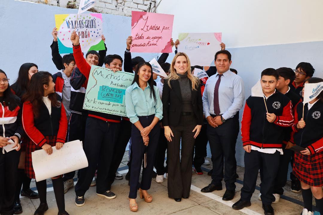 Huixquilucan, Méx.- Como parte del programa “Acción por la Educación”, la alcaldesa Romina Contreras Carrasco entregó pintarrones y sillas para el área de comida en la Escuela Telesecundaria 0401 “José Vicente Villada”, ubicada en Jesús del Monte, con el propósito de renovar por completo sus espacios y dignificar el entorno escolar.