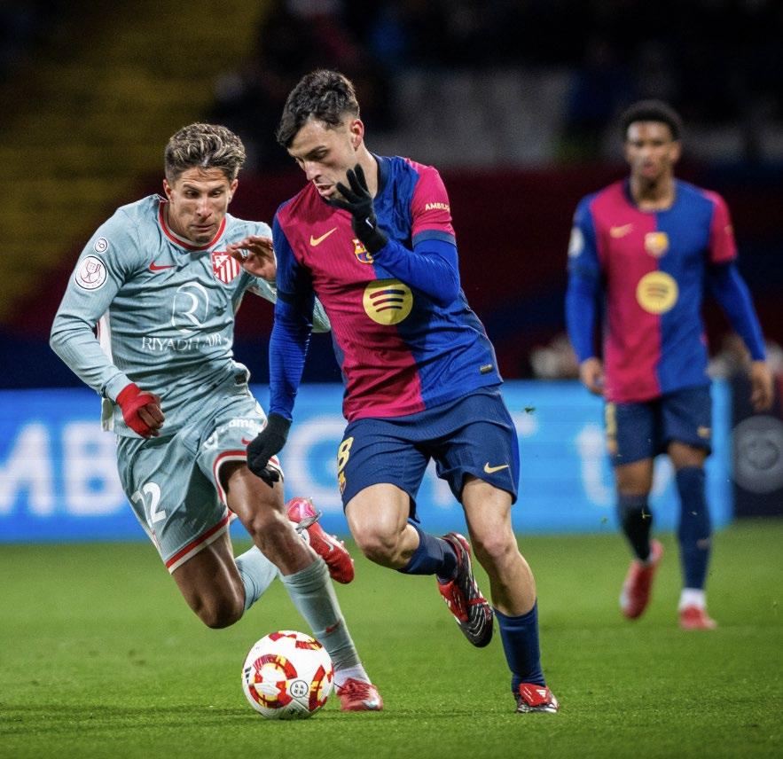 Barcelona, España- En el Estadio Olímpico de Montjuïc. El FC Barcelona y el Atlético de Madrid protagonizaron un emocionante empate 4-4 en la ida de las semifinales de la Copa del Rey. El Atlético comenzó con fuerza, adelantándose 2-0 en los primeros seis minutos gracias a goles de Julián Álvarez y Antoine Griezmann. Sin embargo, el Barcelona reaccionó rápidamente: Pedri anotó en el minuto 19, Pau Cubarsí en el 21 e Iñigo Martínez en el 41, cerrando la primera mitad con un 3-2 a favor de los locales.